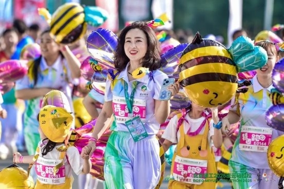 “生态保水”跑团诠释着密云人民保水护水的决心和保护成效,“蜂盛蜜匀”跑团展现了密云“甜蜜事业”的无限活力和发展潜力,“密云劳模”“阳光少年”等跑团勾勒出奋斗者群像与青春能量,这些跃动的方阵不仅成为了赛道上的靓丽风景,更以群体叙事将赛事热度转化为城市精神与生态共同体的鲜活表达。